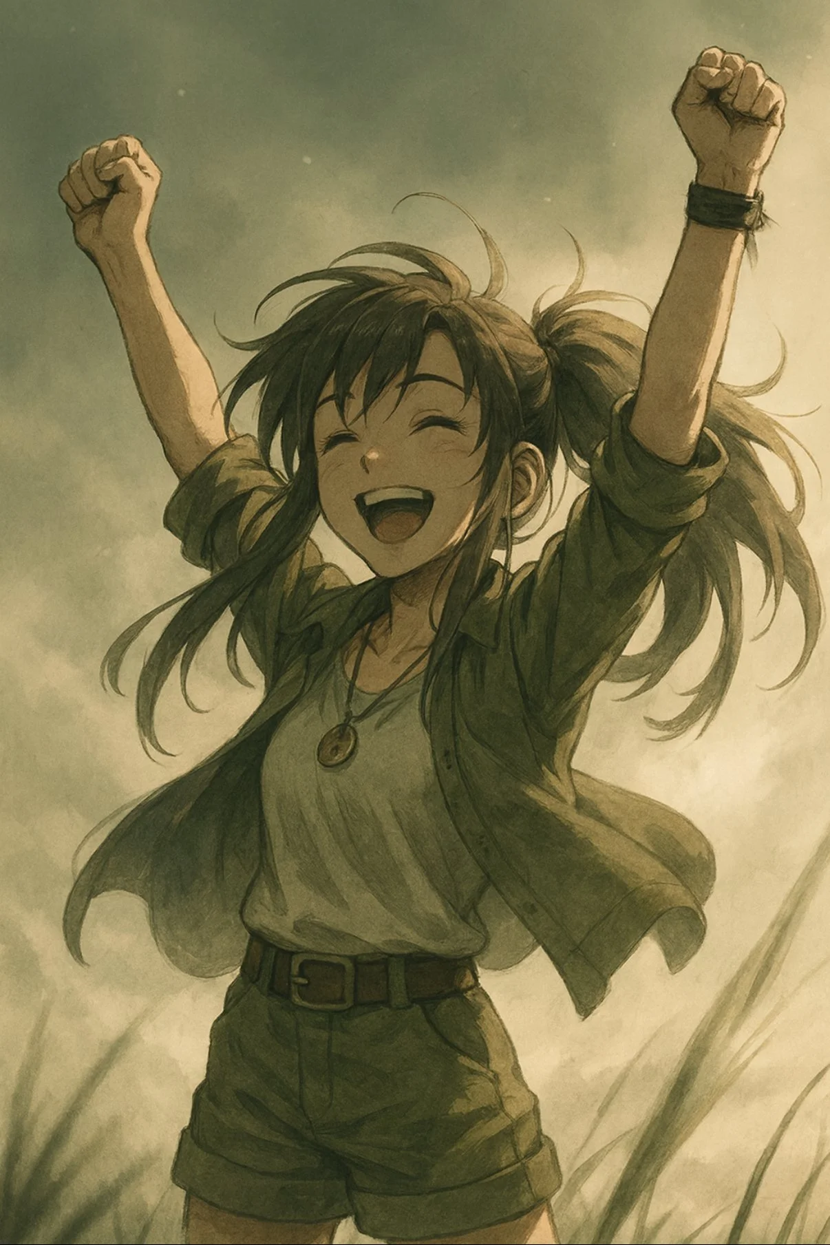 Soft painterly textures, warm earthy tones, and expressive anime character design. Gentle, emotional, and full of uplifting energy.
