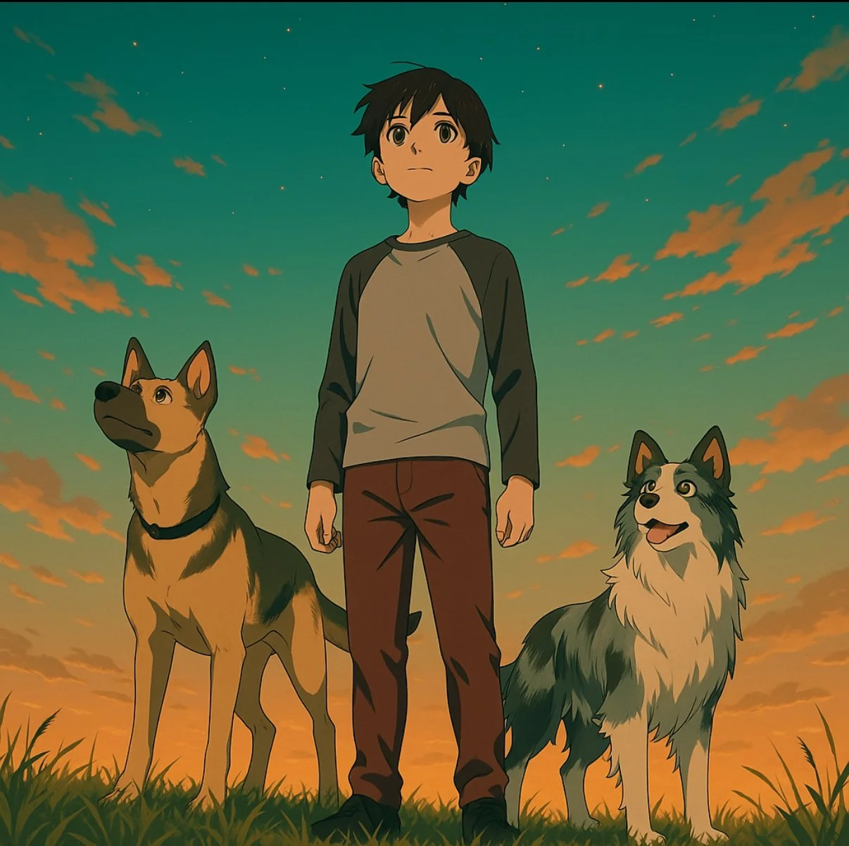 Soft colors, expressive characters, and a warm cinematic sunset. A classic anime look that feels nostalgic, emotional, and full of adventure.
